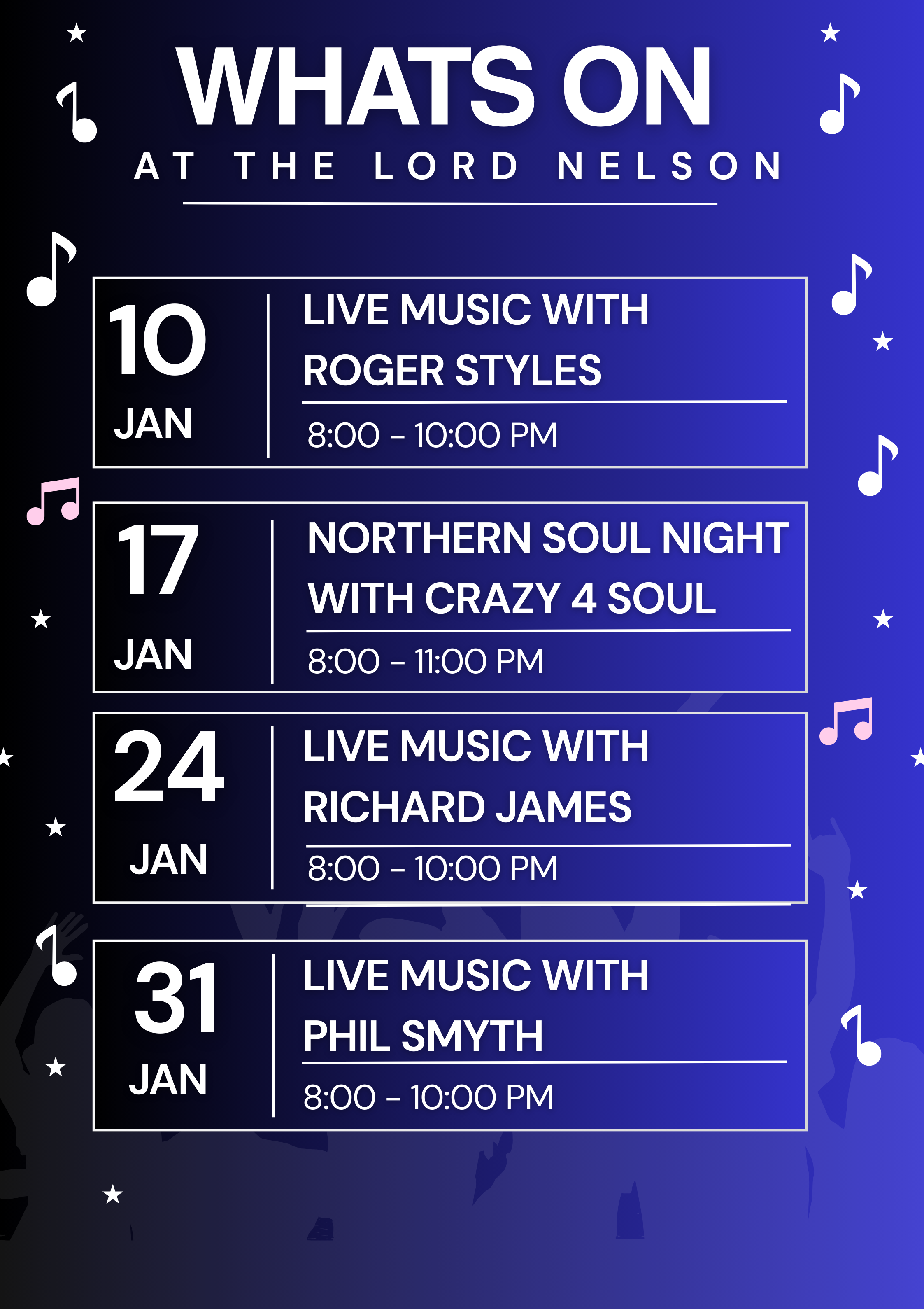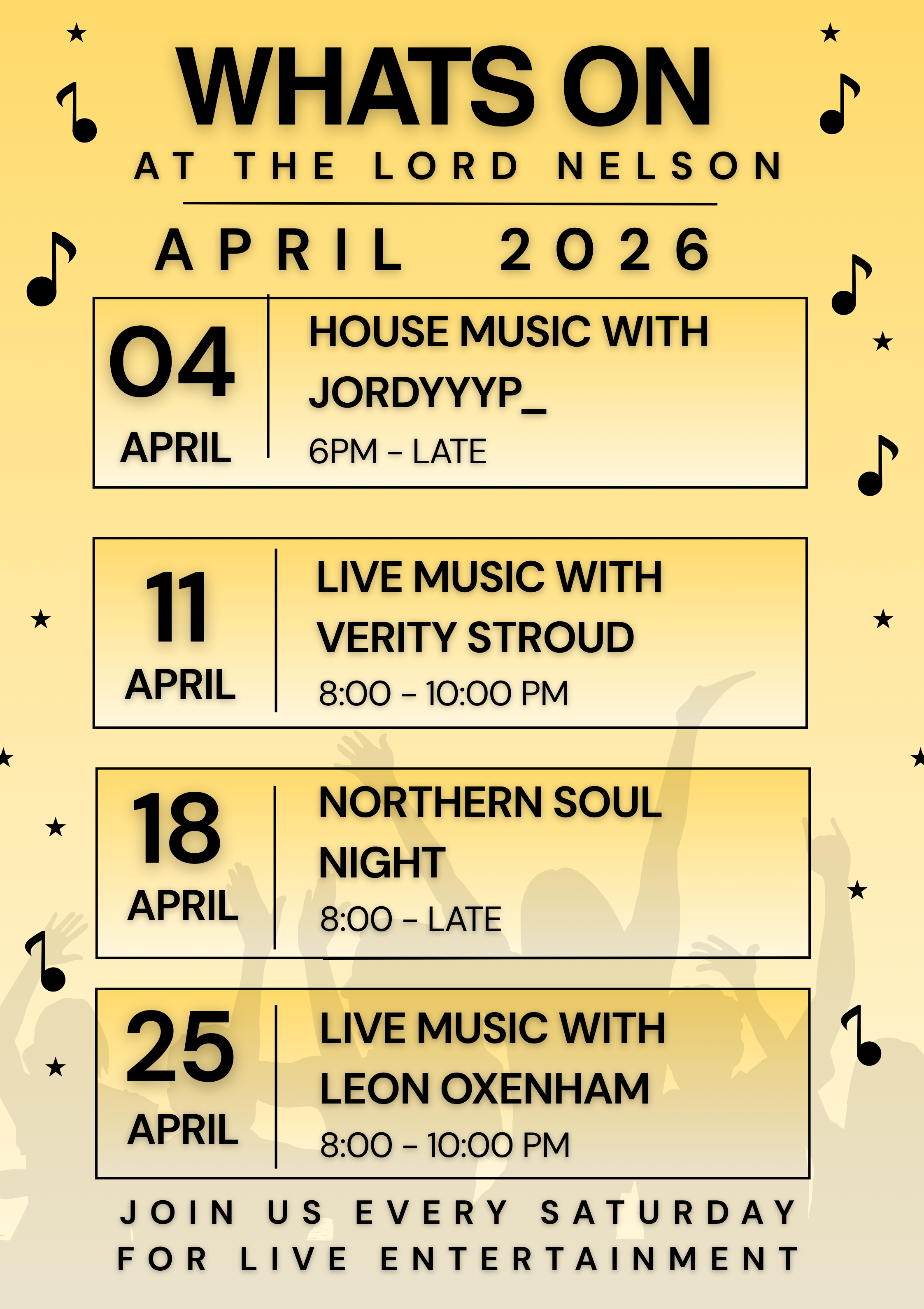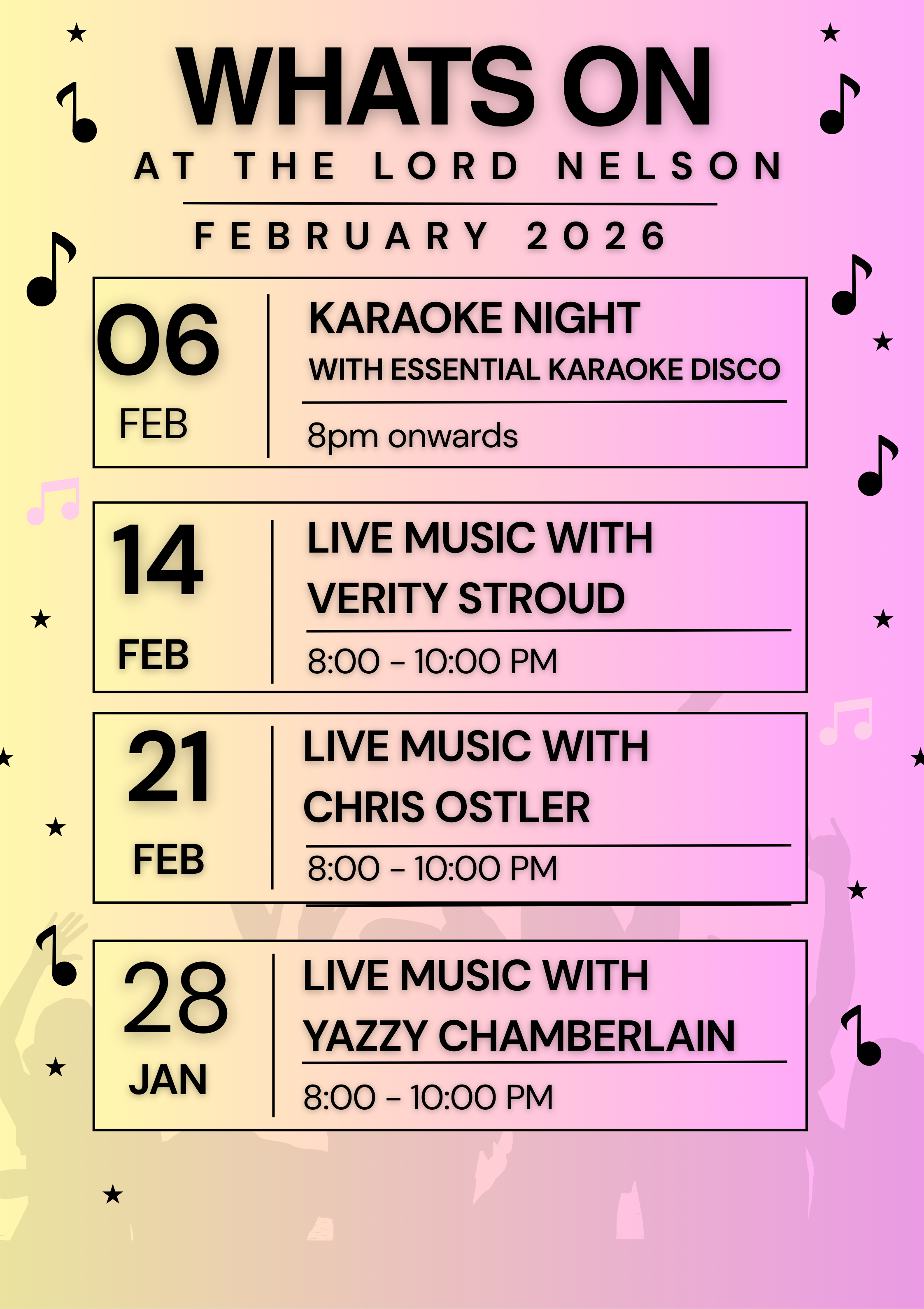 Discover what is happening at The Lord Nelson Pub & Kitchen.